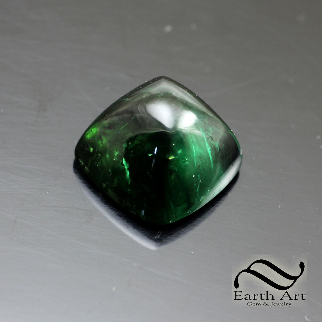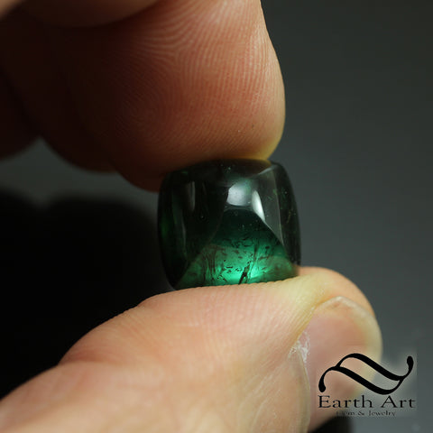This is a really deep shade of verdant green tourmaline. The color is a true green, not really teal, and not the normally more muted color green seen in common tourmaline. It has a very subtle bluish hue, but it is not indicolite. I've tried my best to capture the color in these pictures.