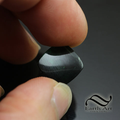 The stone is dark under normal lighting, but is transparent enough to allow it to catch the light. As you can see, it does display the internal clevage planes and healed fractures commonly seen in natural tourmaline.